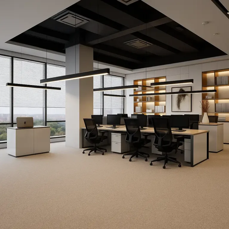 Durable office carpets that reduce noise and create comfortable, professional work environments.