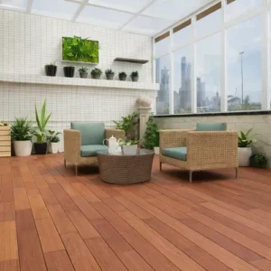 Outdoor tiles, composite decking, and heavy-duty vinyl flooring are ideal for high-traffic areas like restaurants, hotels, and commercial spaces.