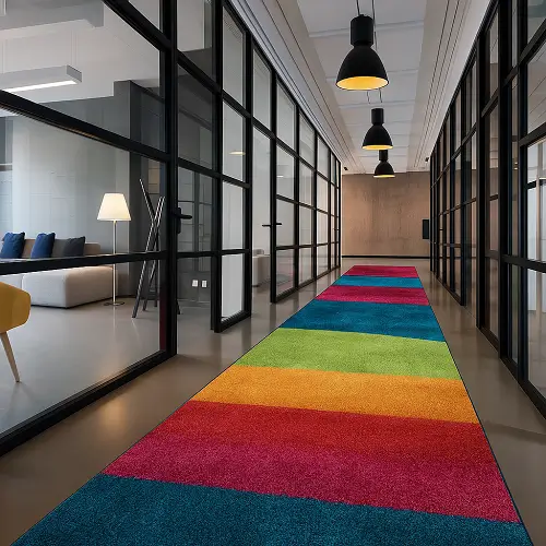 Wool rugs, flat-weave rugs, and durable synthetic rugs are excellent for hallways, living rooms, offices, and hotel spaces with heavy foot traffic.